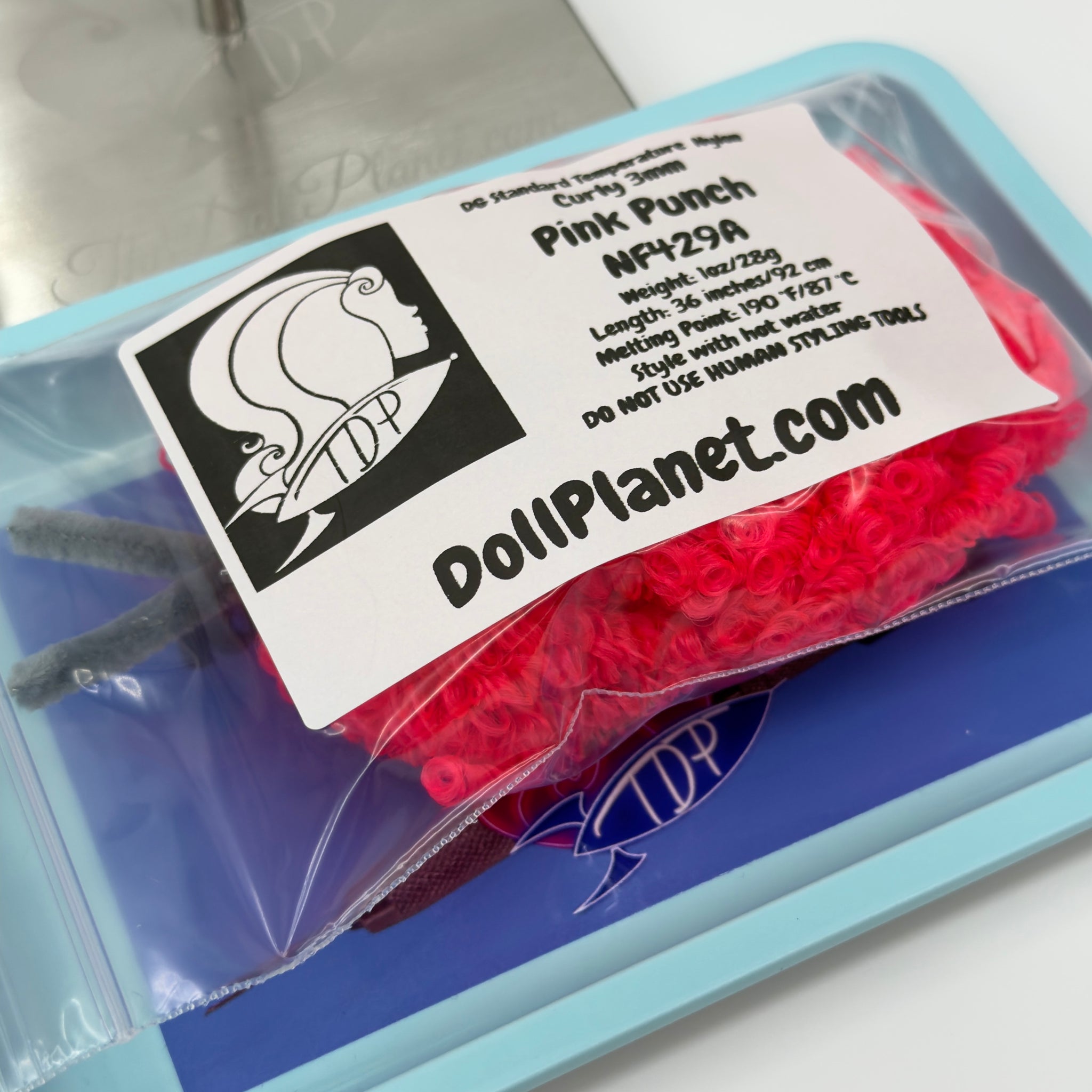 DG Nylon Curly Pink Punch NF429A 3mm 1oz/28g 36in/92cm Doll Hair