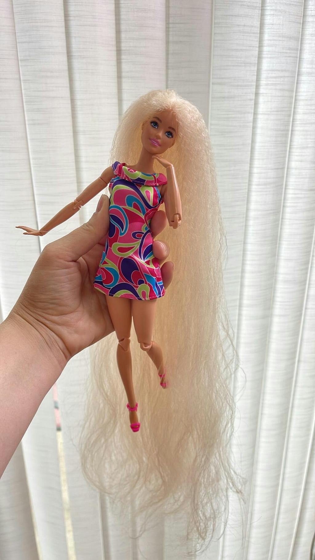 I loved working with this hair fiber and texture! It was easy to use and separate into plugs for re-rooting. I took fashionista #223 and rooted her to have the same long luscious crimped hair of her predecessor, Totally Hair Barbie. Totally recommend this for any blonde crimped re-root!